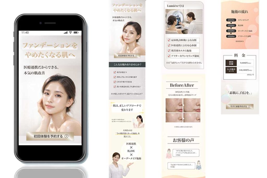 配色設定や視線誘導、動線の設計まで。感覚だけに頼らず、理論とデータをもとに「伝わる」構造を設計します。見た目の美しさだけでなく、成果につながるデザインを大切にしています。